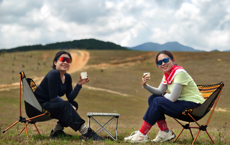 08:00: Sau bữa sáng, bạn chuẩn bị vật dụng nhỏ gọn phù hợp cho hành trình. Nhân viên UP hướng dẫn an toàn, khởi động và trang bị vật dụng cho hành trình hiking ngắm hoàng hôn Tà Năng.
